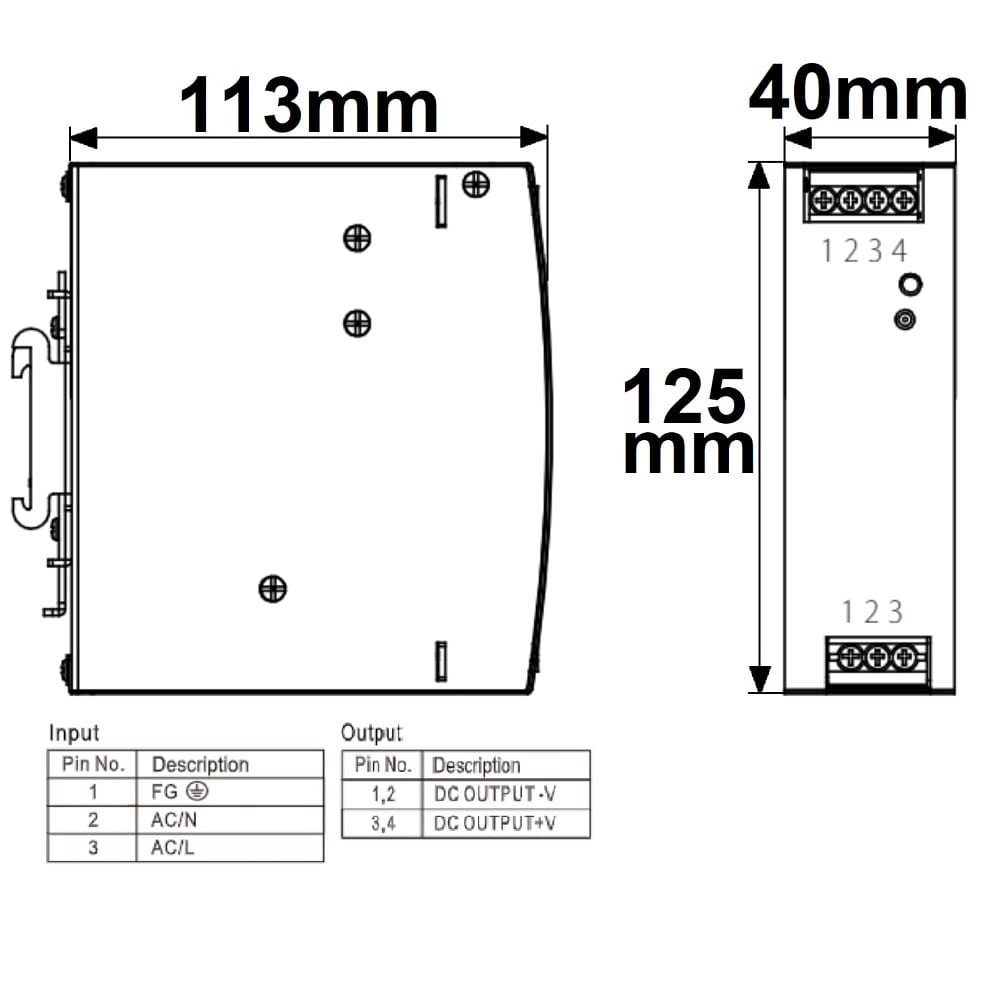 top-hat rail module TRANSFORMER 24V, 24~28V/DC, 0-150W , IP20