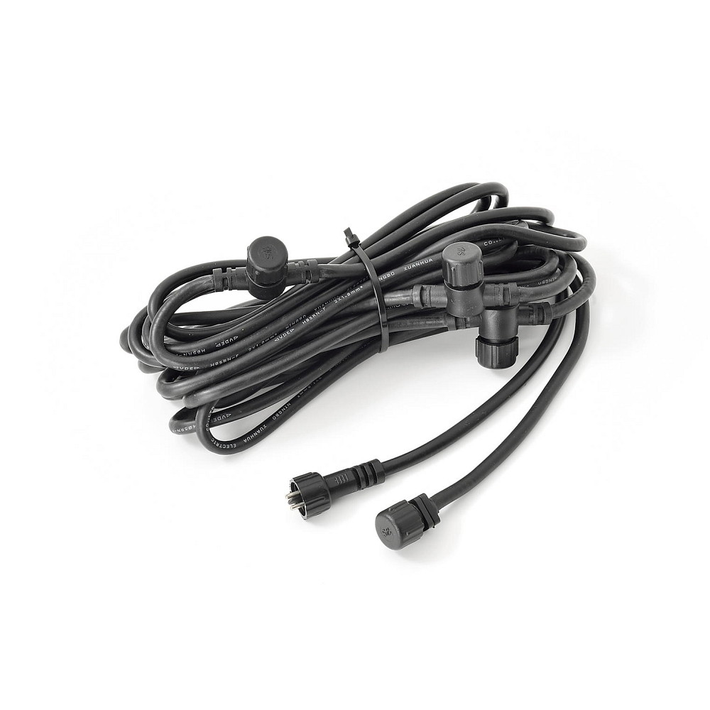 Verlängerungskabel / 4-fach-Verteiler für 12V LED Leuchten, IP44, Länge 600cm, Auslässe alle 200cm, Schwarz, Kunststoff
