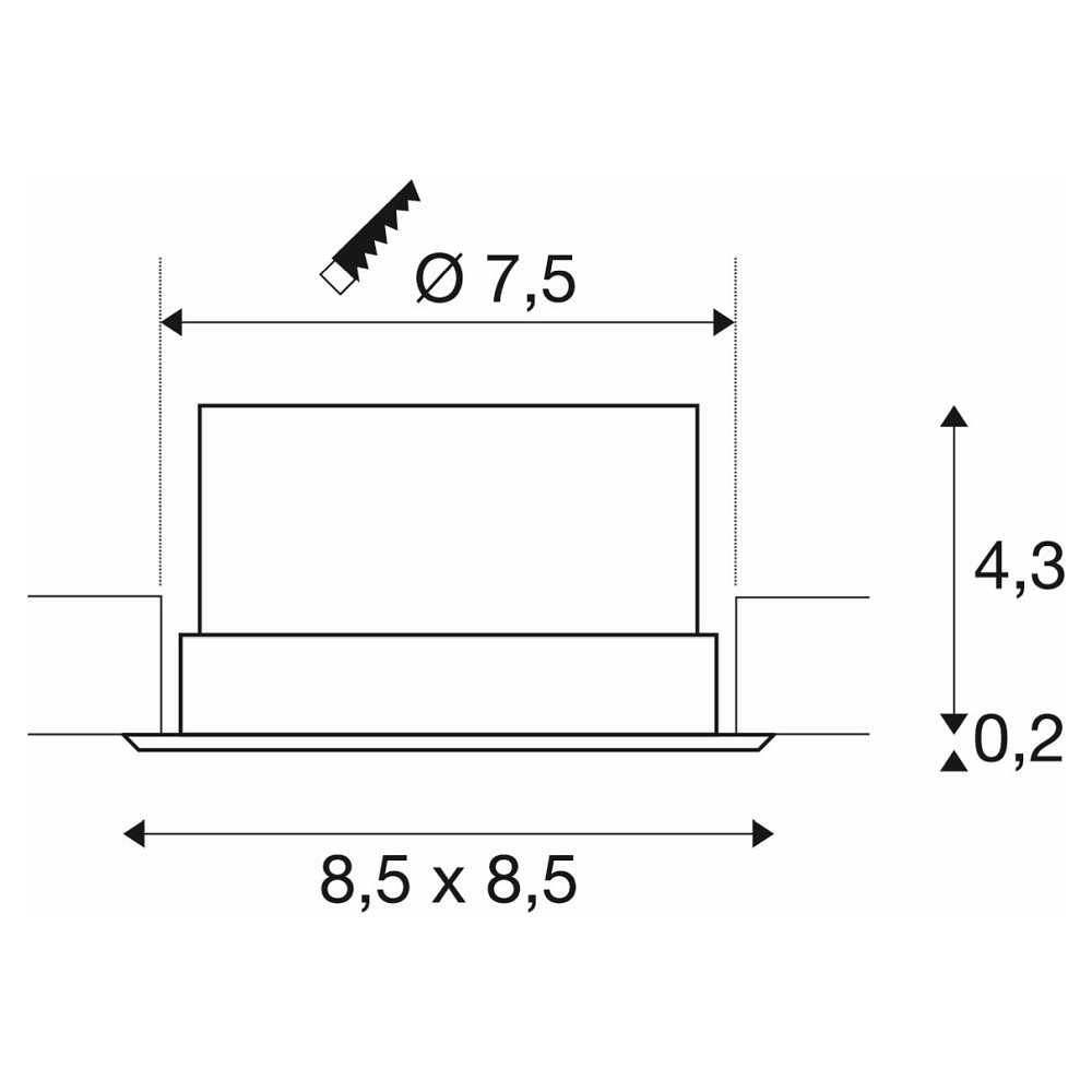The recessed light has dimensions of 8.5 x 8.5 x 4.5 cm and is made of aluminum and plastic. With a color rendering index of 80Ra, it ensures accurate color reproduction. The average lamp lifespan is 35000 hours, ensuring long-term usage.