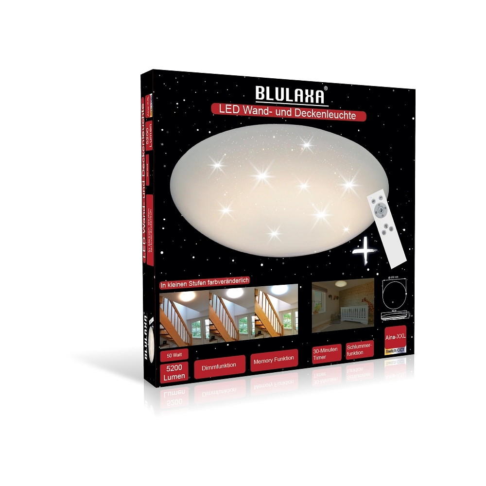 The LED Wall and Ceiling Light Aina-XXL is an innovative lighting solution that impresses with a modern starry sky design. With a power of 50W and a luminous flux of 3800lm, it provides bright and pleasant lighting in any room.