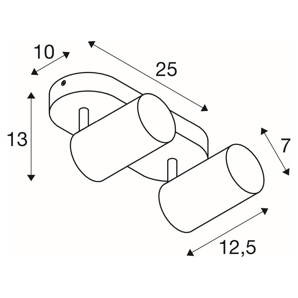 wall and ceiling luminaire ASTO TUBE CW DOUBLE 2 flames, long, cardanic swivelling GU10 IP20, white dimmable