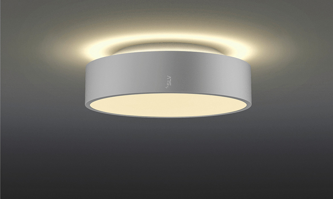 The LED Wall/Ceiling Light MEDO® 30 is suitable for various areas such as living rooms, bedrooms, hallways, or offices. With its round design and grey color, it blends harmoniously into any room and creates a pleasant atmosphere. With a wide beam angle of 110°, it offers uniform and glare-free lighting.