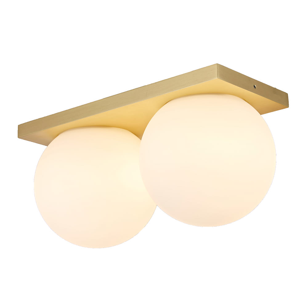 The Ceiling/Wall Light PALLA MINI DOUBLE has a compact size with a shade diameter of 10 cm and an overall size of 21 x 10 x 10.5 cm. The canopy has a height of 2 cm and is made of high-quality aluminum, while the shade is made of opal milk glass.