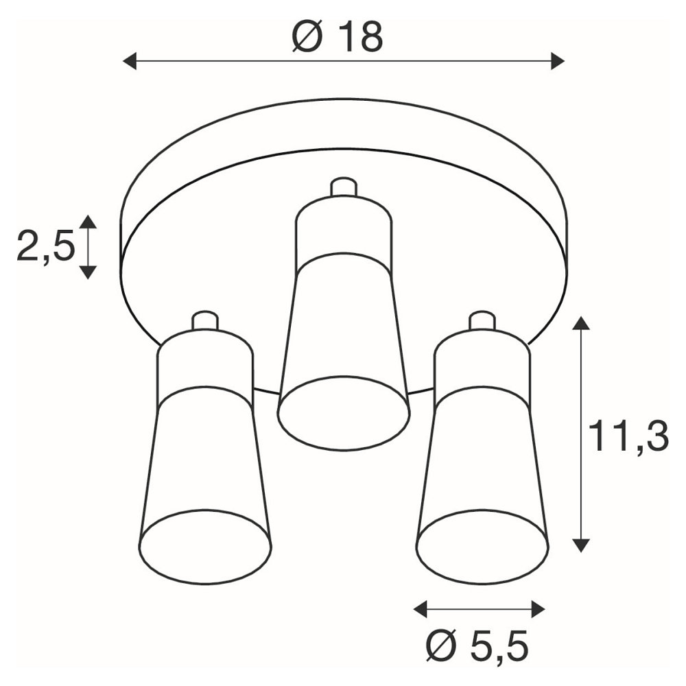 wall and ceiling luminaire PURI 2.0 - CONE 3 flames, round GU10 IP20, grey dimmable
