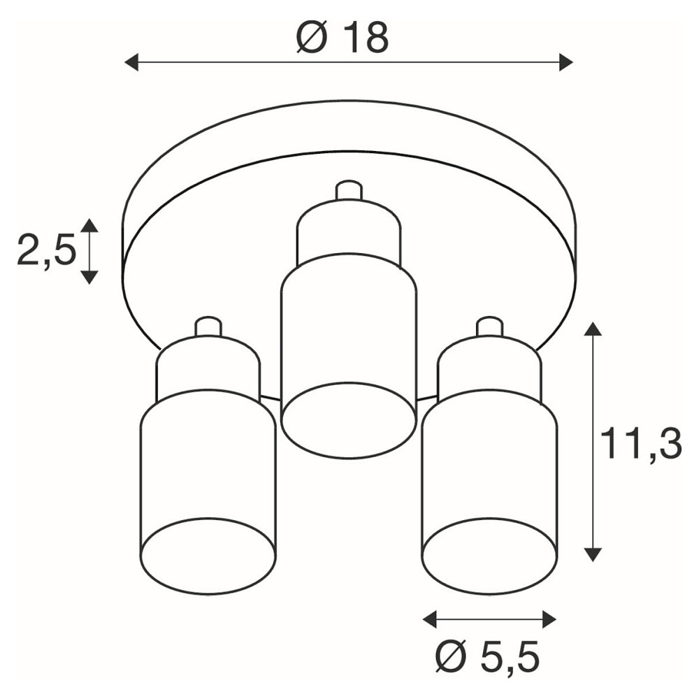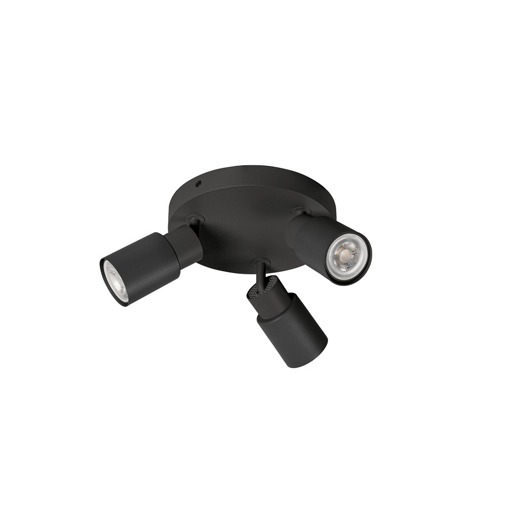 wall and ceiling luminaire PURI 2.0 - TUBE 3 flames, round GU10 IP20, black dimmable