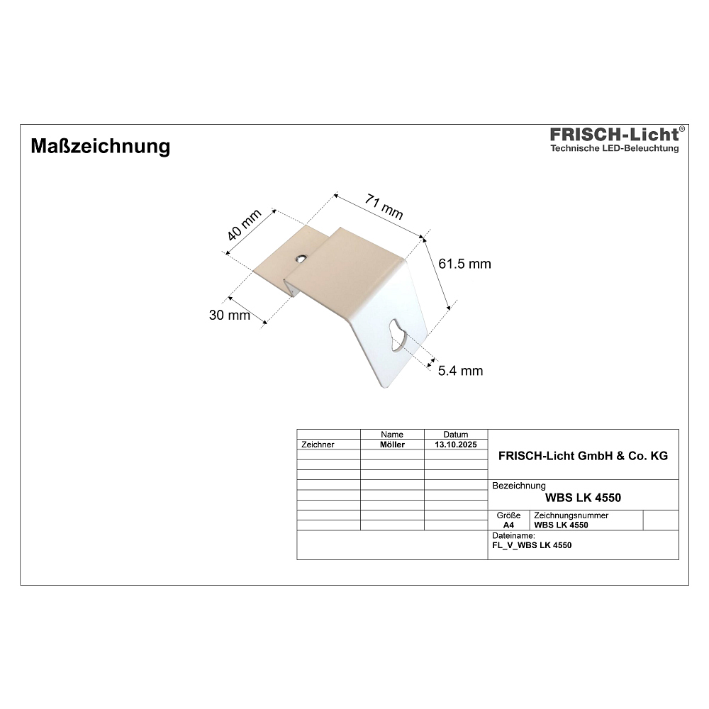 Please note that the fixture itself is not included in the delivery. The wall mount set serves as an optional accessory to attach suitable FRISCH-Licht LED light channel single fixtures to the wall. It reliably complements your lighting system and ensures a professional and clean appearance.