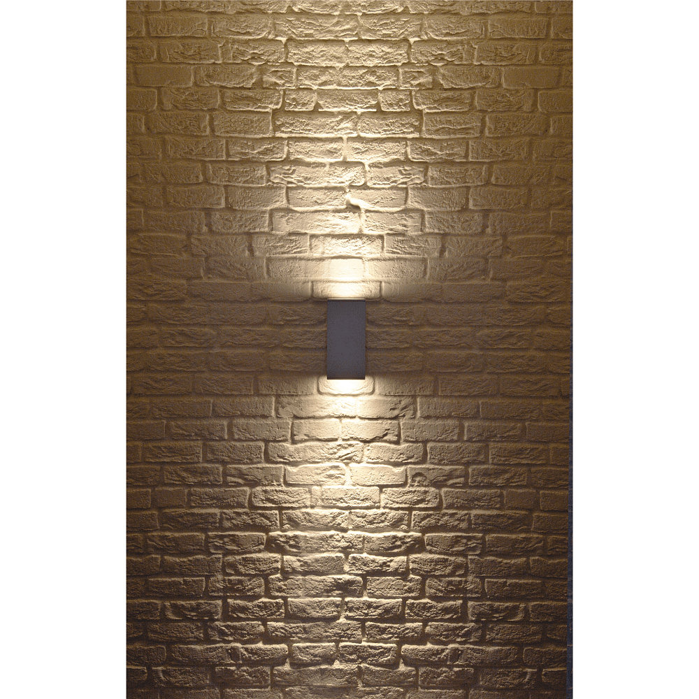 This wall light features a two-beam light distribution that emits light both upwards and downwards. This creates a harmonious up-down beam that highlights facades or specific areas in a targeted manner. With two sockets for GU10 QPAR111 reflector lamps, you can individually adjust the light intensity and direction to create exactly the desired atmosphere.
