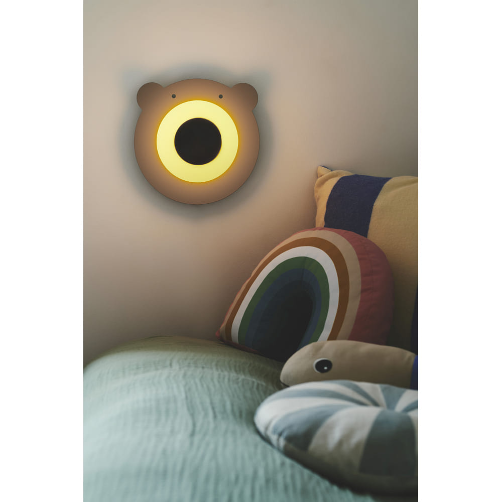 The children's room light BRUNA BEAR wall light is an excellent lighting solution for the children's room. With its cute bear motif in brown, it blends perfectly into the childlike environment and creates a pleasant atmosphere.