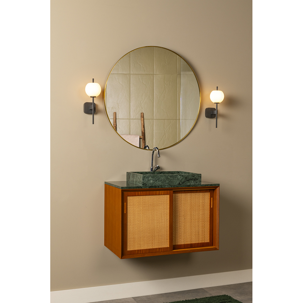 High-quality materials such as metal and glass were used in the manufacturing of the ELDA wall light, ensuring durability and stability. The round glass shade serves as a light-diffusing distributor and provides pleasant, glare-free illumination. The light features protection class 2 as well as IP44 protection rating, which protects it against splashing water and thus guarantees safe use.