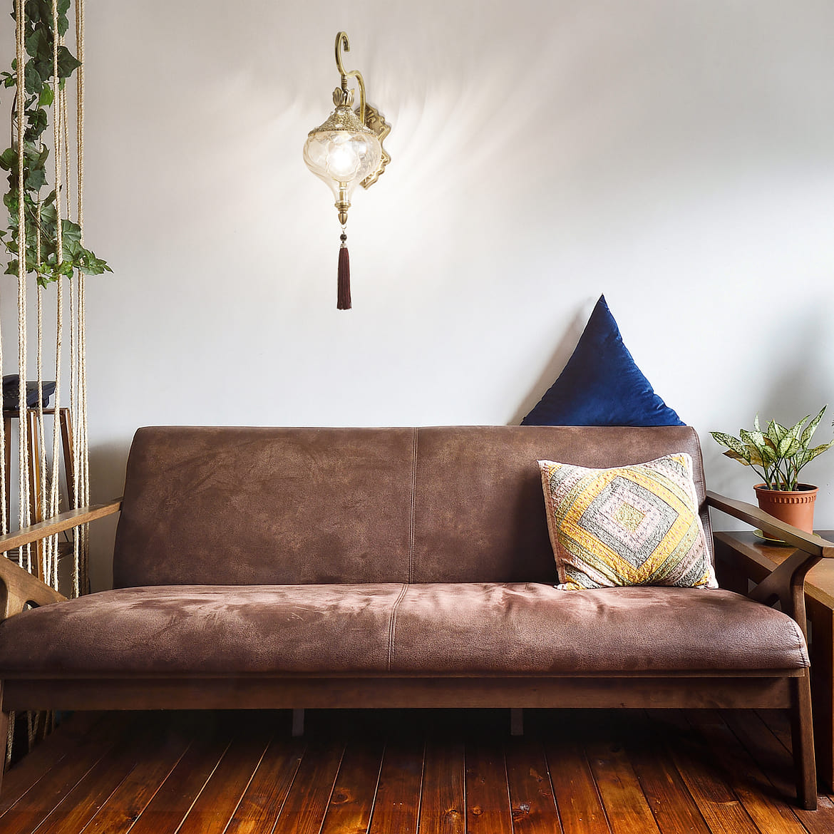 The wall light HAREM AP1 is an elegant and stylish lighting solution for indoor spaces. With its antique brass finish, it seamlessly blends into various interior styles and adds a warm and cozy atmosphere to any room.