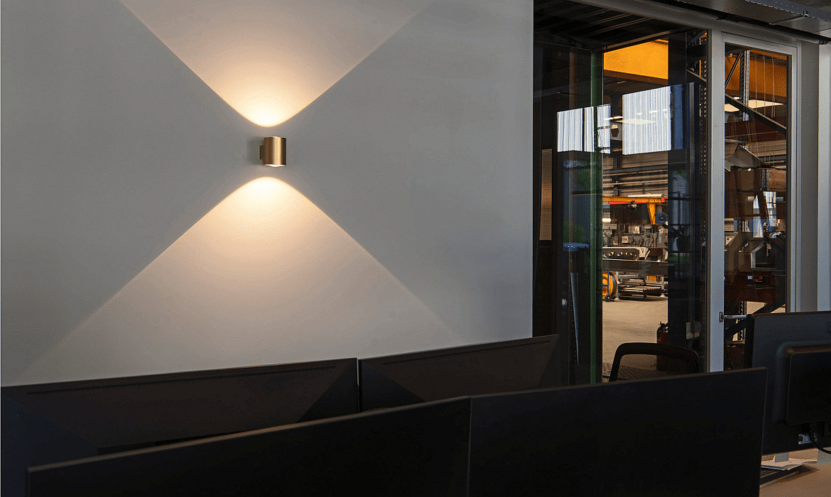wall luminaire OCULUS PHASE DTW UP/DOWN round, Dim-To-Warm, adjustable IP20, brushed brass dimmable