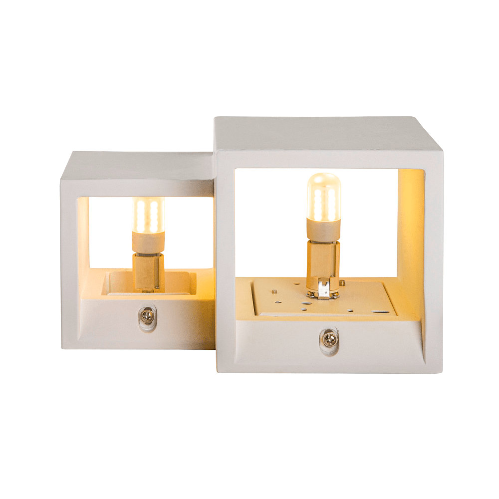 The wall light PLASTRA WL CUBES has space for 2 light sources of type QT14 or LED G9 with maximum dimensions of Ø/L: 7/4 cm. With a power consumption of 15W, it provides sufficient brightness and a cozy atmosphere.