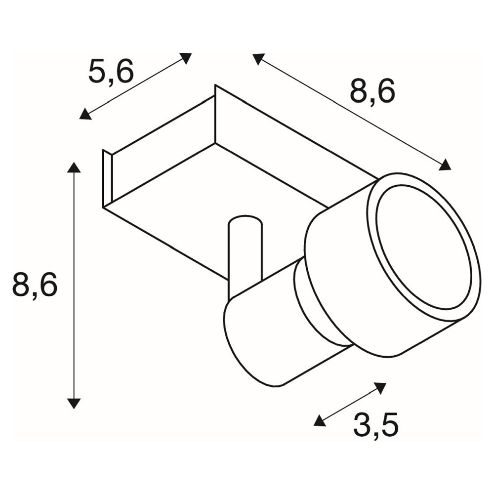 The light has an operating voltage of 230V and a size of 8.6 x 5.6 x 8.6 cm. The rotation range is 350° and the swivel range is 85°. The weight of the light is 0.27kg and it has a protection class of 1.