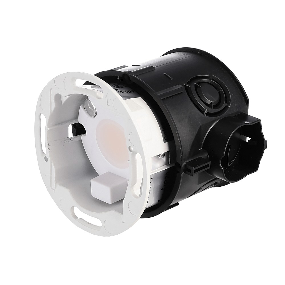 The installation opening has a diameter of 6.15cm and a depth of 3.99cm. The mounting can be done either as a recessed installation or with additional accessories. The power connection is made via a terminal block and the operating voltage range is 220-240V~. Accessories such as drivers, covers, connection cables, and mounting frames are available separately.