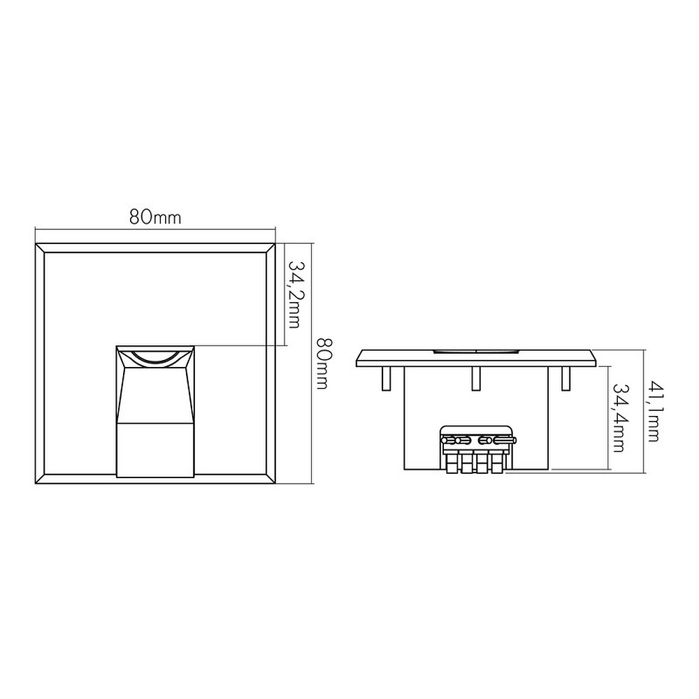 The square recessed wall light has a color temperature of 3000K and a color rendering index of 90Ra. It has an average lamp lifespan of 30000 hours and weighs only 0.082kg. The protection class 2 and the IP protection rating IP40 ensure safety and reliability.