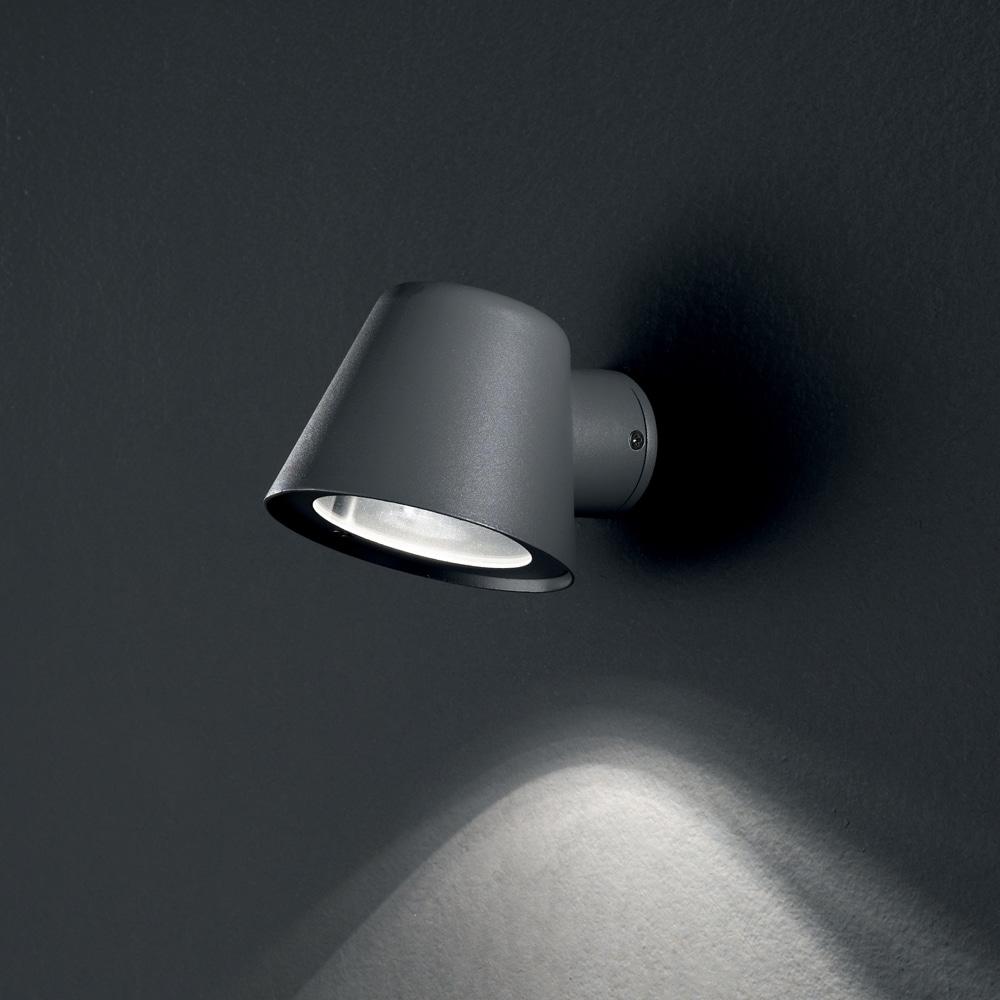 The wall spotlight GAS AP1 is an elegant wall light that is ideal for indoor use. With dimensions of 11.5 x 9.5 x 15 cm and a weight of 0.32 kg, this spotlight is compact and lightweight. It is made of high-quality glass and metal and has an anthracite color that fits many interior styles.