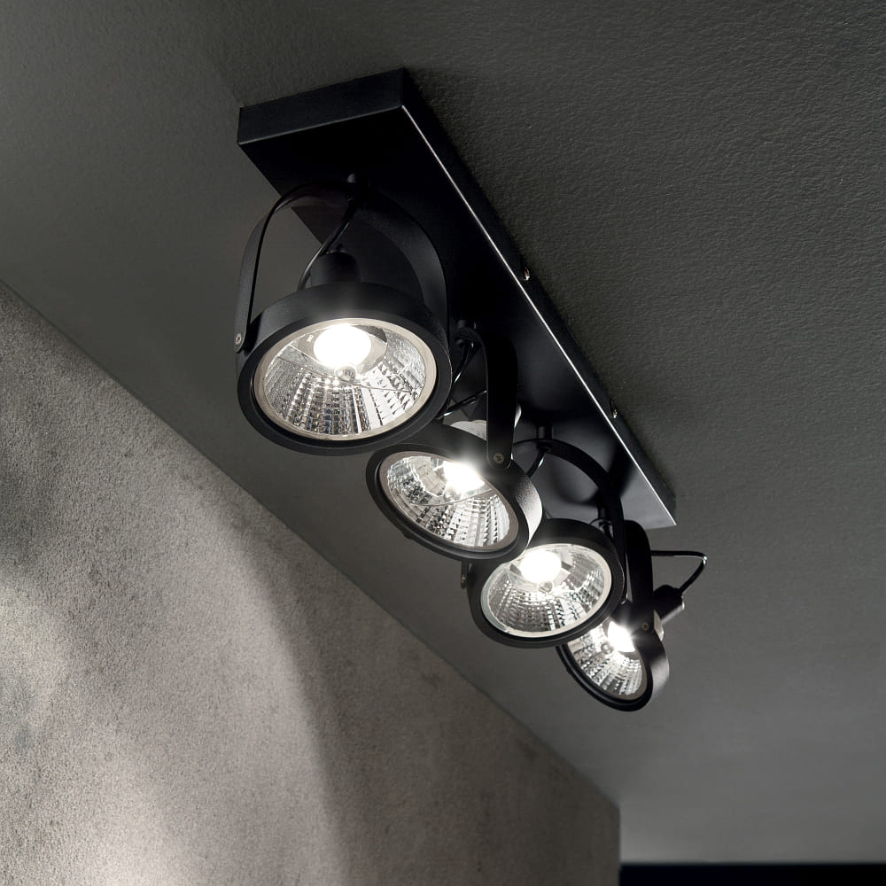 Wand-/Deckenspot GLIM, 4-flammig, inkl. GU10 QPAR111 13W 3000K, Schwarz