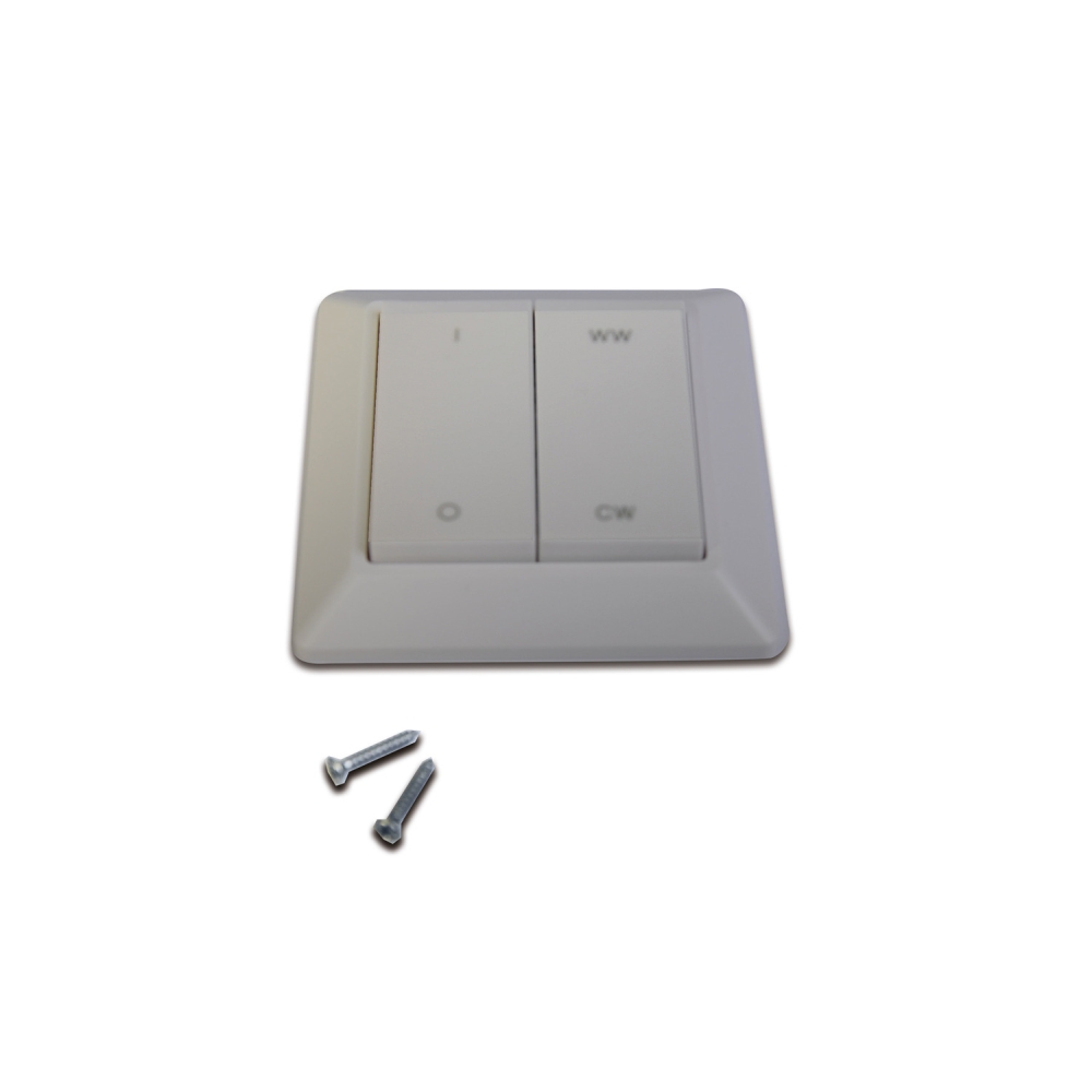 Wandtaster zum Schalten und Dimmen sowie der Farbtemperatur-Steuerung von LED Beleuchtungsartikeln mit einstellbarer Weißlicht-Lichtfarbe (CCT Switch, Tunable White).