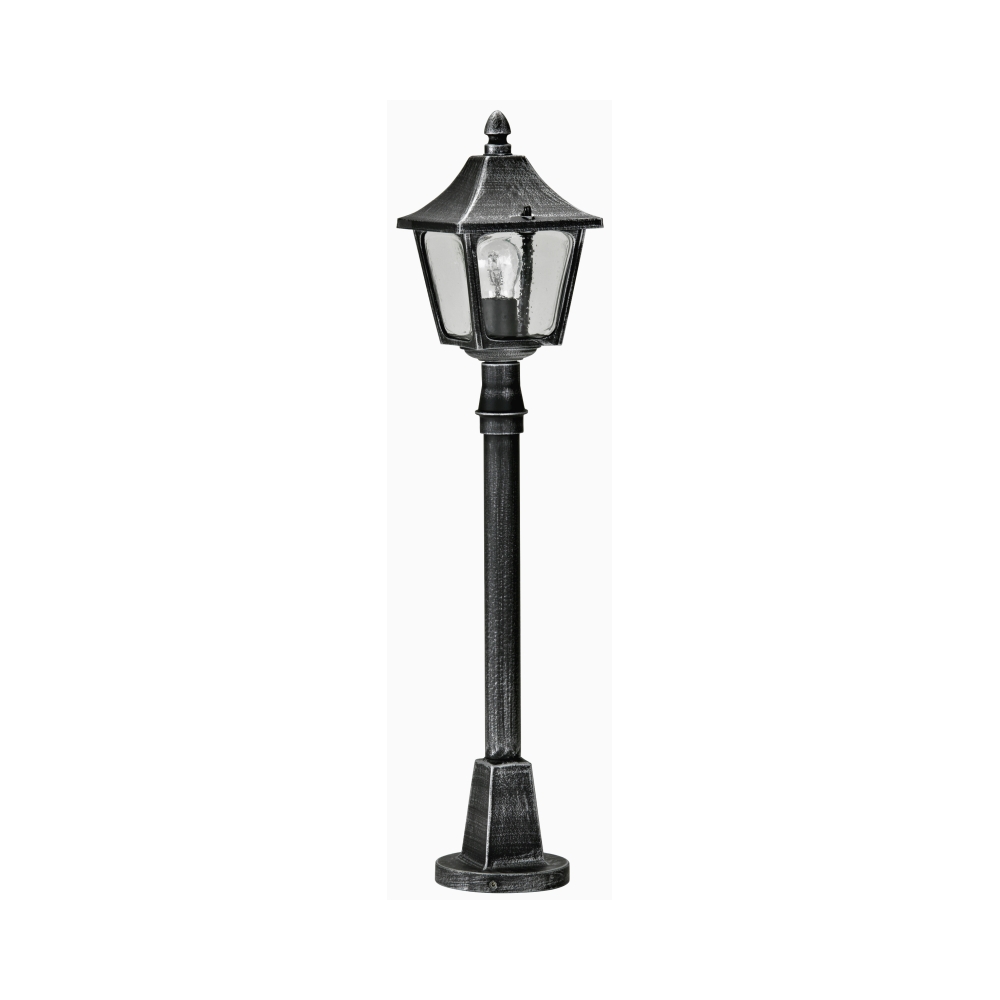 Wegeleuchte Landhausstil eckig Typ Nr. 4128, Höhe 85cm, IP44, E27, Alu-Guss / Hohlglas klar, Schwarz