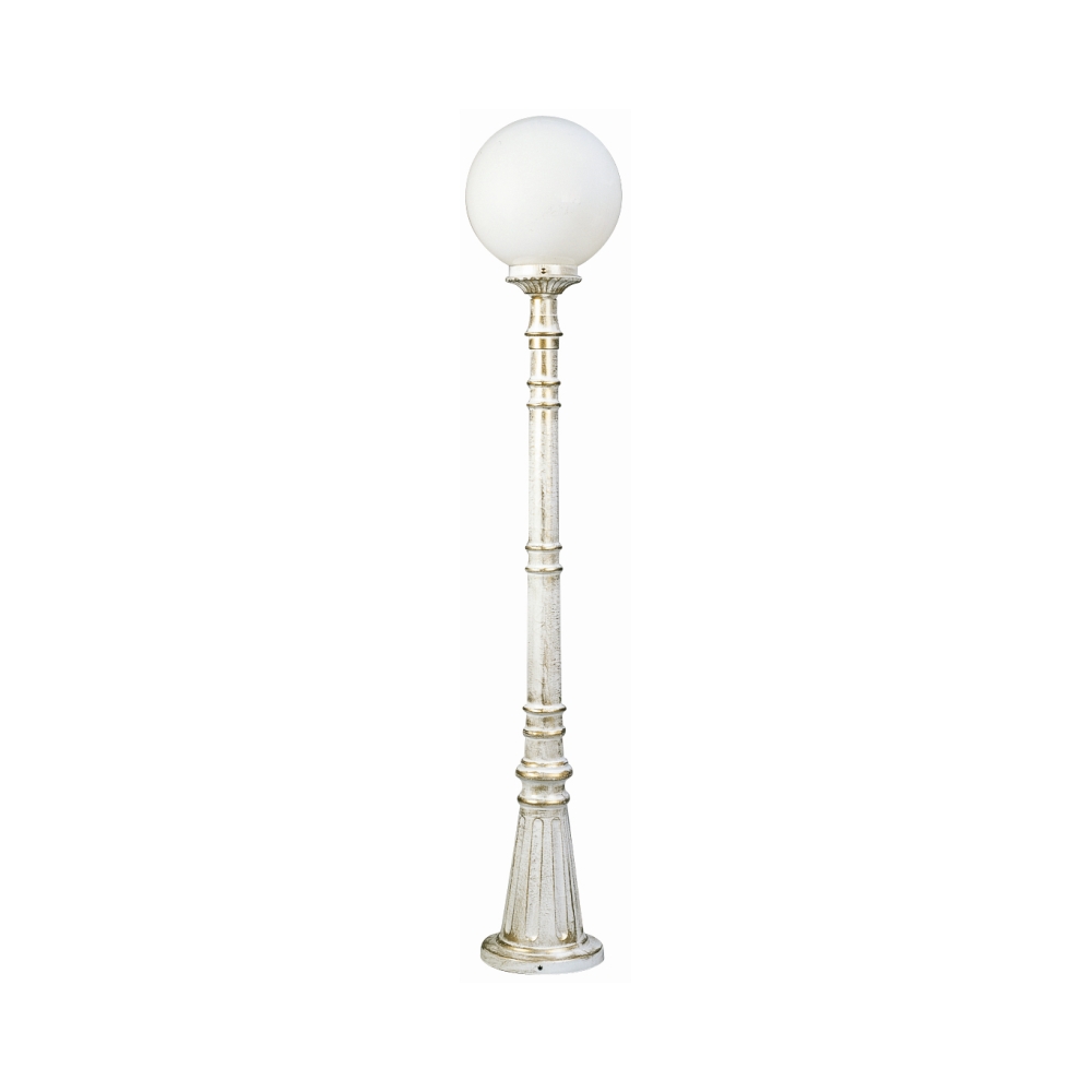 Wegeleuchte Typ Nr. 2014 mit Kugelschirm Ø 25cm, IP44, Höhe 134cm, E27 QA55 max. 57W, Alu-Guss / Opalglas, Weiß-Gold